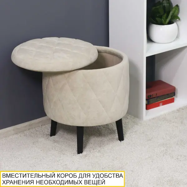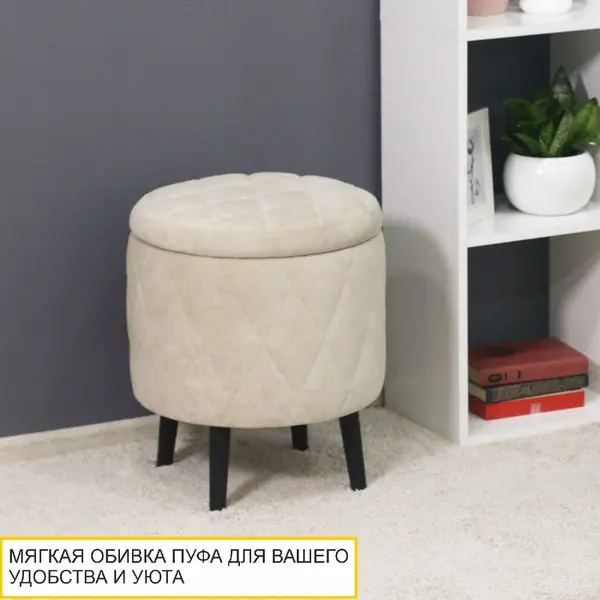 • Мягкая обивка пуфа выполнена из износостойкой ткани софт-велюр, что обеспечивает комфортное использование.