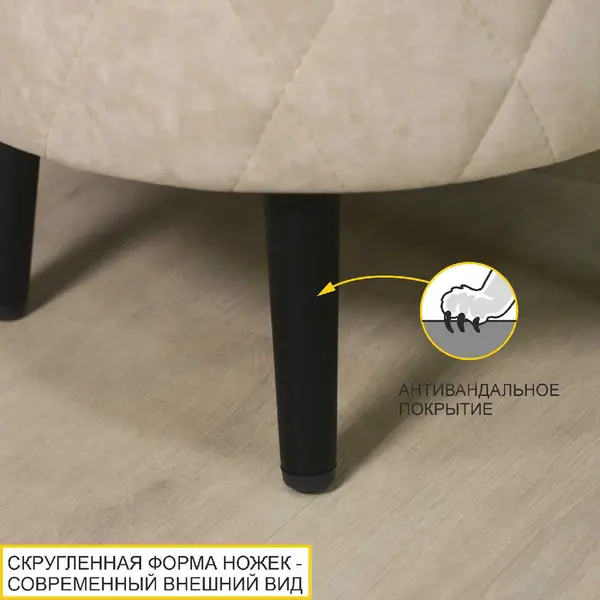 • Скругленная форма опор придаёт пуфу современный внешний вид.