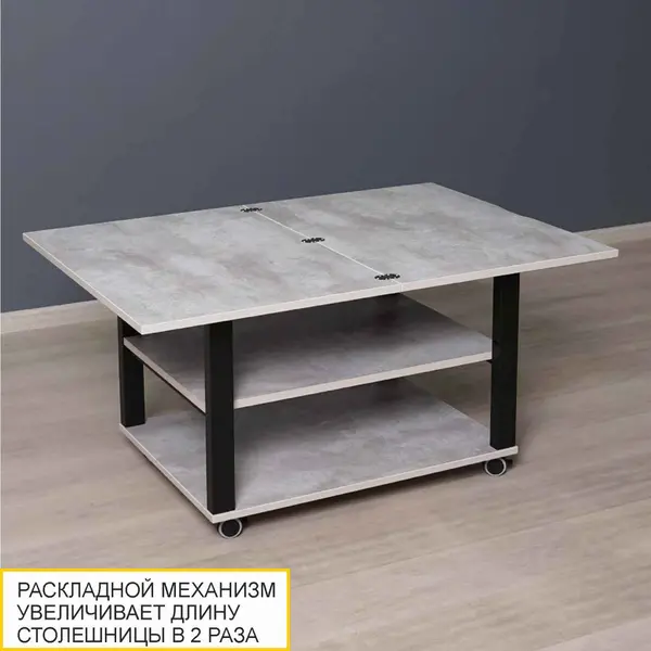• Подъемный механизм позволяет преобразовать журнальный стол в обеденный, увеличивая высоту до 76 см. Благодаря подъемному механизму стол может использоваться не только как кофейный столик, а также как полноценный стол для кухни или для гостиной.