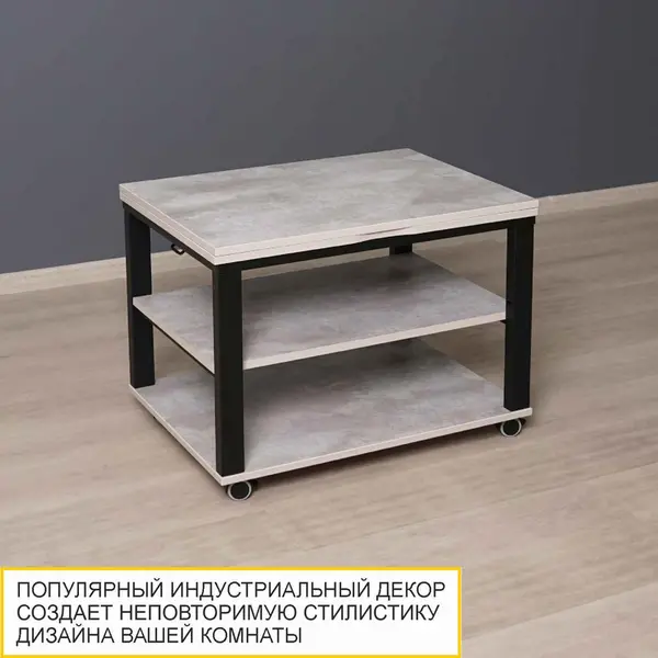 Журнальный стол выполнен в популярном декоре, который создает неповторимую стилистику дизайна Вашей комнаты. Обладает реалистичной цементной фактурой и отлично подходит для создания современных интерьерных решений.