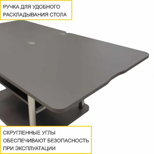 • Стол оснащен вместительной полкой, что позволяет удобно организовать хранение необходимых предметов.