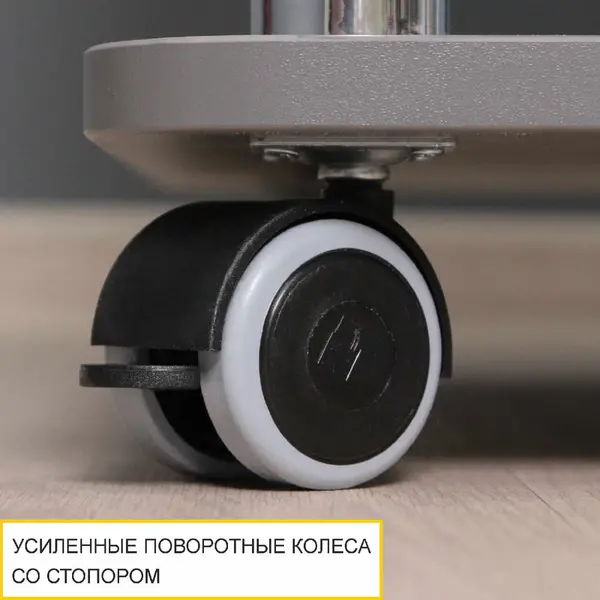 • Усиленные поворотные колеса со стопором позволяют зафиксировать стол в нужном положении для удобства его трансформации.
