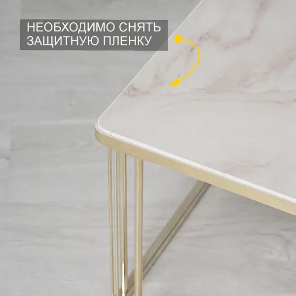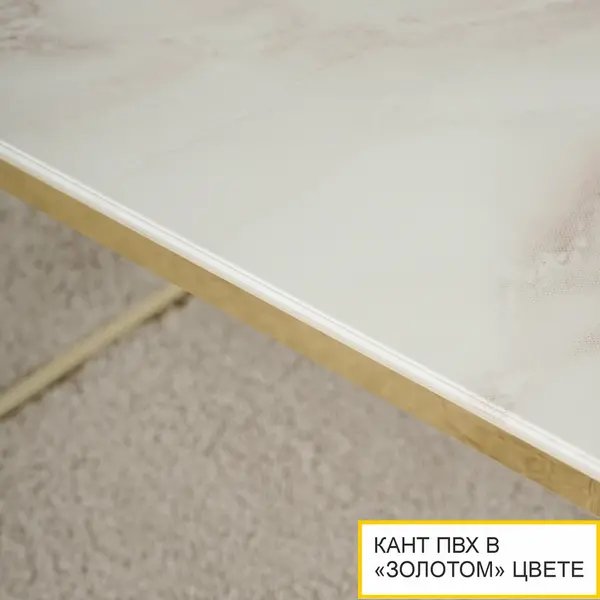 Одной из главных особенностей столиков является россыпь глиттера, которая придаёт их поверхности дополнительный блеск и делает по-настоящему уникальными. Рисунок мрамор создает эффект натурального камня, добавляя в Ваш интерьер нотки роскоши и утончённости. Золотой кант из ПВХ не только завершает дизайн, но и защищает края от повреждений, что делает столы более долговечными.