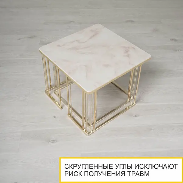 Выбирая комплект квадратных журнальных столиков с золотыми ножками, вы получаете не только стильный, но и практичный элемент мебели. Он легко вписывается в различные интерьеры, будь то современный, классический или минималистичный стиль. Стол Рим 45 станет центром притяжения в вашей гостиной, привнося в пространство атмосферу уюта и комфорта.