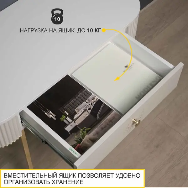 • Туалетный столик оснащен вместительным ящиком, что позволяет удобно организовать хранение важных предметов.