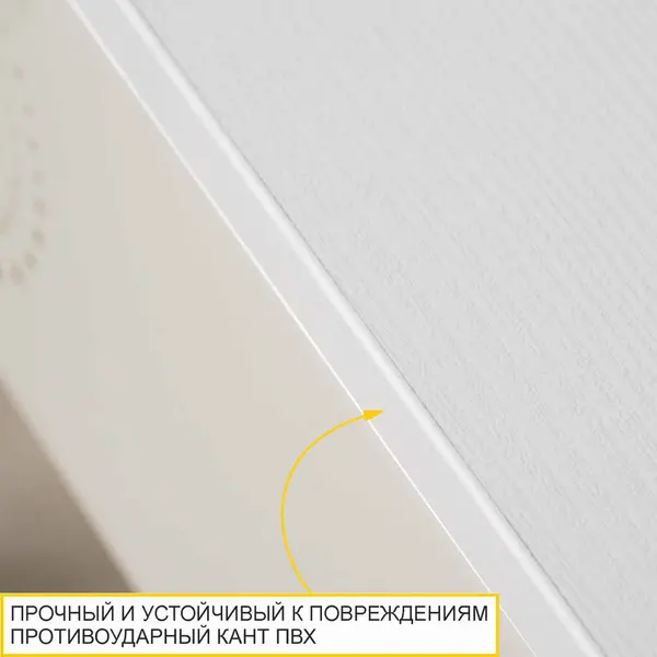 • Противоударный кант ПВХ толщиной 2 мм защищает края изделия от сколов и влаги, увеличивает срок эксплуатации изделия и сохраняет его внешний вид на долгие годы.