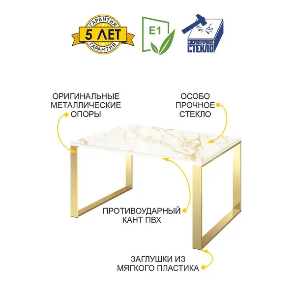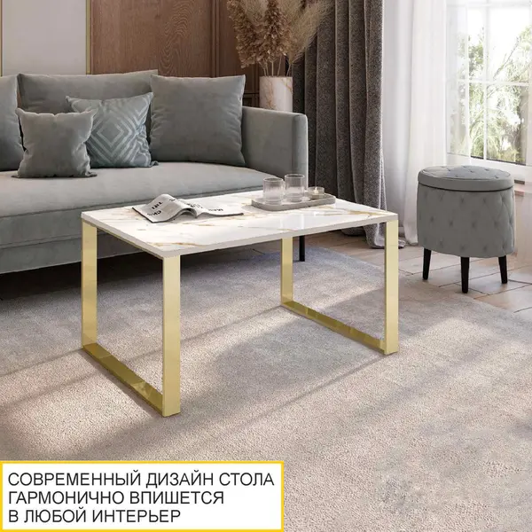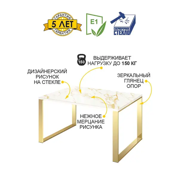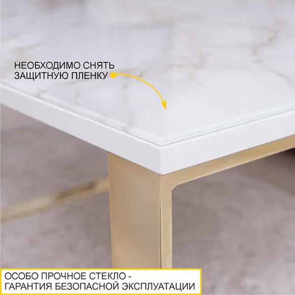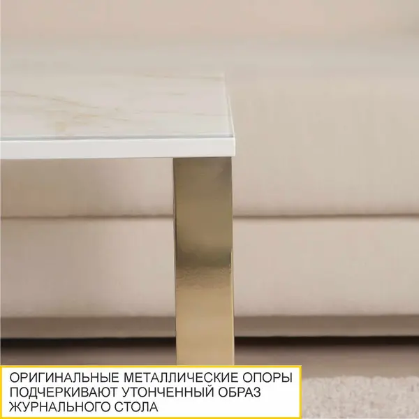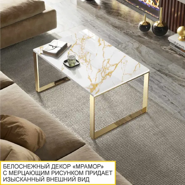 Благодаря современному дизайну журнальный столик впишется в любой интерьер. Отличное решение для тех, кто хочет идти в ногу со временем. Белоснежный декор столешницы «мрамор» с мерцающим золотым рисунком придает изысканный и элегантный внешний вид столику. Сочетание благородного белого и золотого цветов добавляет нотку роскоши и особой атмосферы Вашей комнате.
