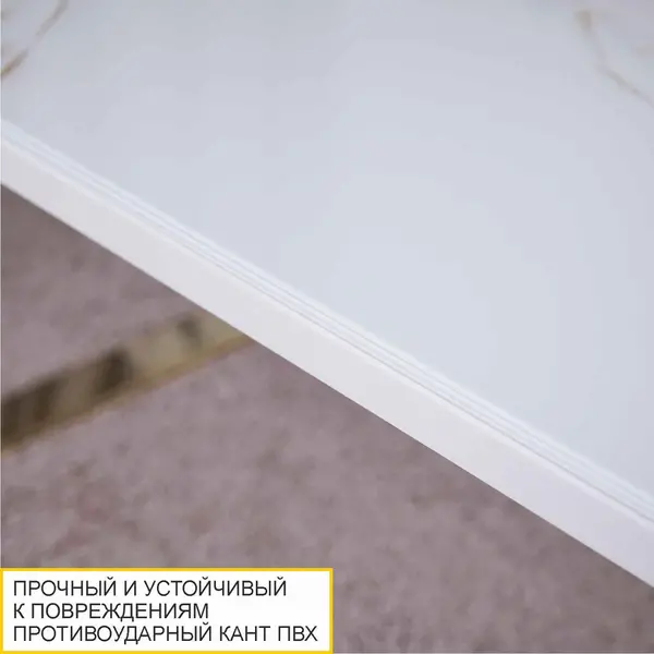 • Противоударный кант ПВХ толщиной 2 мм защищает края изделия от сколов и влаги, увеличивает срок эксплуатации изделия и сохраняет его внешний вид на долгие годы.