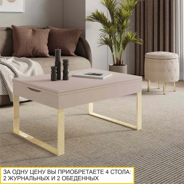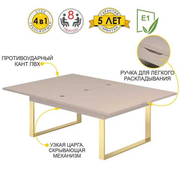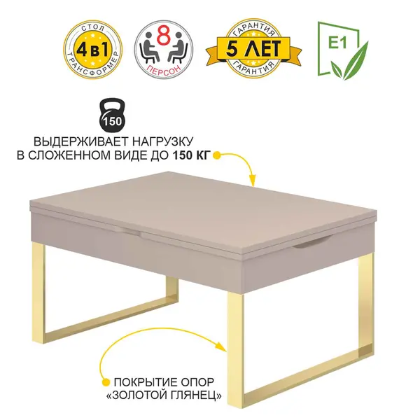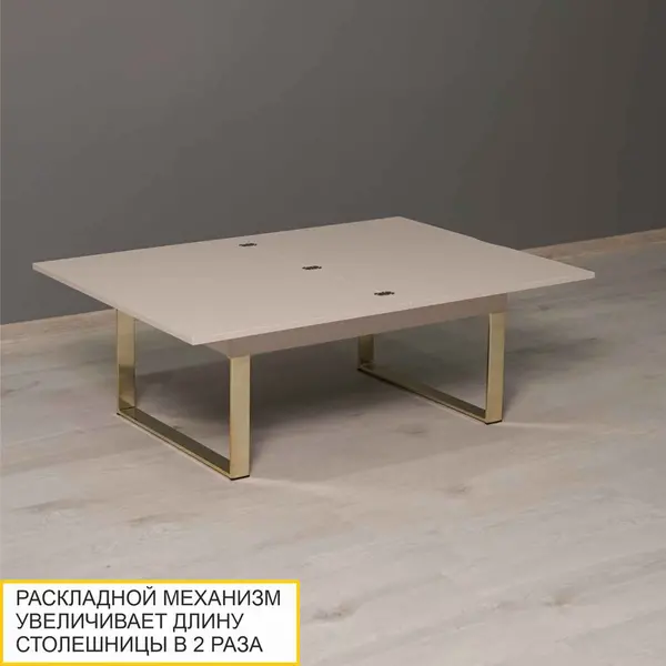 Стол выполнен в цвете "кашемир". Этот цвет является одним из ключевых трендов в дизайне интерьеров. В сочетании с "золотыми" опорами натуральный кашемировый оттенок приобретает выразительность и элегантность.