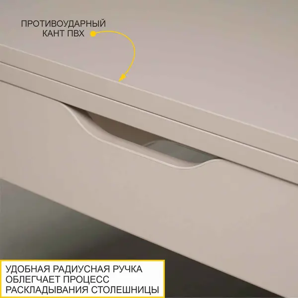 • Радиусная ручка облегчает процесс раскладывания столешницы.