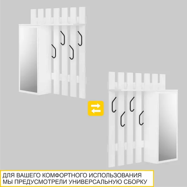 • Для Вашего комфортного использования мы предусмотрели возможность универсальной сборки. Шкаф можно разместить как с левой, так и с правой стороны от панели с крючками.