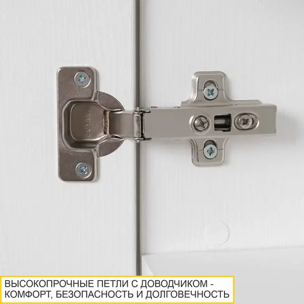 • Высокопрочные петли с доводчиком рассчитаны на многократное открывание и плавное закрывание шкафчика с зеркалом.