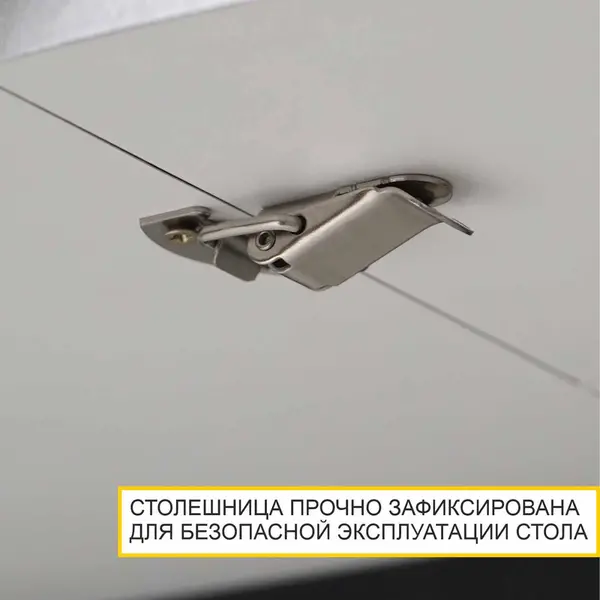 • Замок для фиксации столешницы придает жесткость конструкции как в собранном, так и в разложенном виде. Позволяет надежно зафиксировать столешницу во время эксплуатации стола.