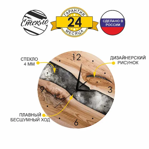 Настенные дизайнерские часы «Venerdi» могут не только показывать время, они станут красивым акцентом, элементом декора для дома или офиса. А также могут использоваться в качестве оригинального подарка для коллег и близких. Часы произведены на одной из крупнейших фабрик России, изделие проходит многочисленные испытания и тесты на качество. Циферблат размером 35х35 см изготовлен из стекла 4 мм. Дизайнерский рисунок подчеркивает современный стиль изделия и добавляет ему оригинальности. Благодаря стеклу рисунок не стирается и не выцветает со временем. Надежный кварцевый часовой механизм имеет бесшумный плавный ход секундной стрелки, что позволяет разместить часы даже в спальне. Часы приходят в сборе, необходимо только установить батарейку типа АА, в комплект не входит.