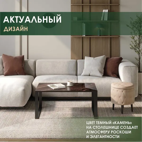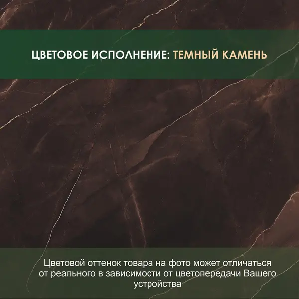 Цвет «Темный камень» на столешнице создает атмосферу роскоши и элегантности. Этот глубокий и насыщенный темный оттенок напоминает о природных материалах, таких как гранит и мрамор, и придает комнате изысканный вид. Темные оттенки добавляют пространству глубину и выигрышно выглядят в современных лаконичных интерьерах.