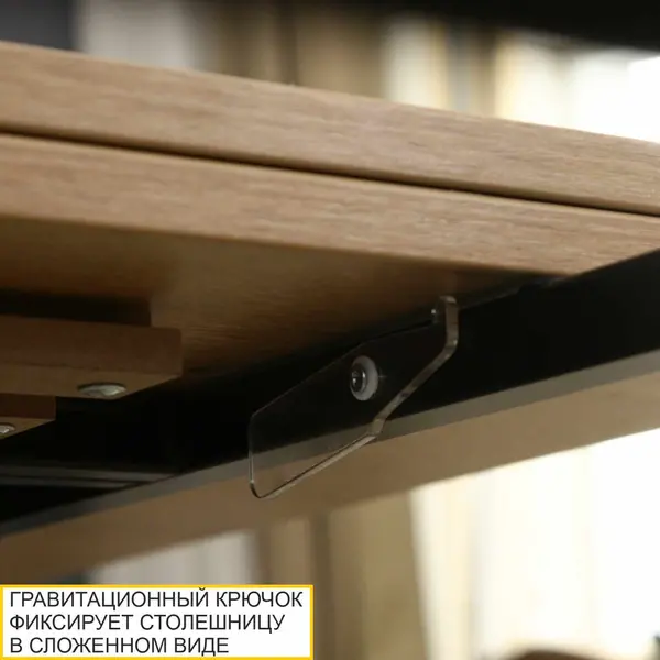 • Гравитационный крючок придает жесткость конструкции в собранном для безопасной трансформации стола.