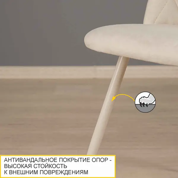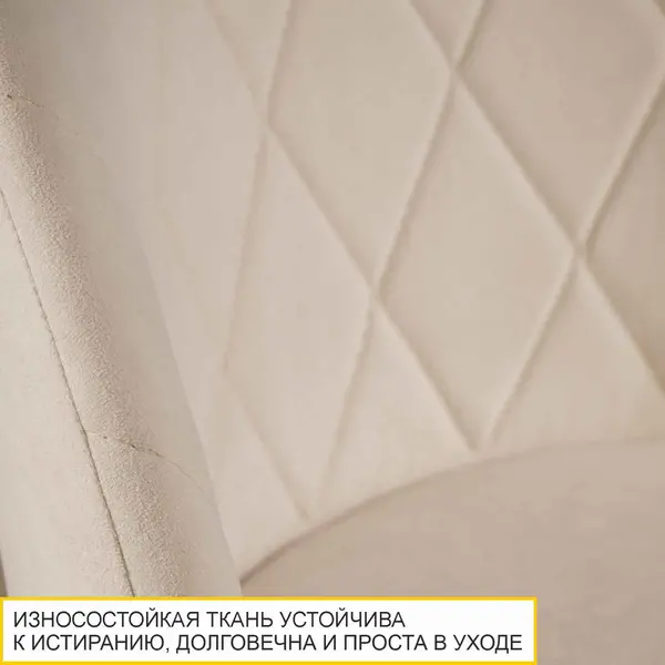 Универсальность светло-бежевого цвета, в котором выполнен стул, выгодно подчеркивает уютную атмосферу интерьера. Светло-бежевый оттенок успокаивает и настраивает на отдых, а приятная на ощупь фактура ткани не оставит Вас равнодушными.