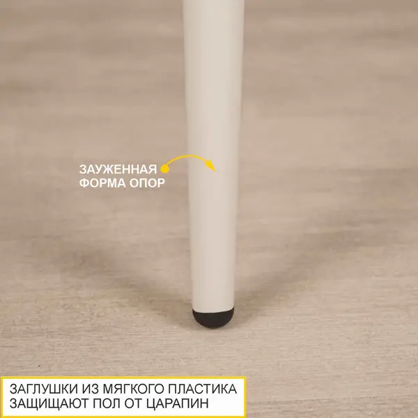 • Заглушки из мягкого пластика исключают риск повреждения напольного покрытия и защищают пол от царапин. Качественный пластик обеспечивает плотную посадку заглушек в опору и исключает их поломку.