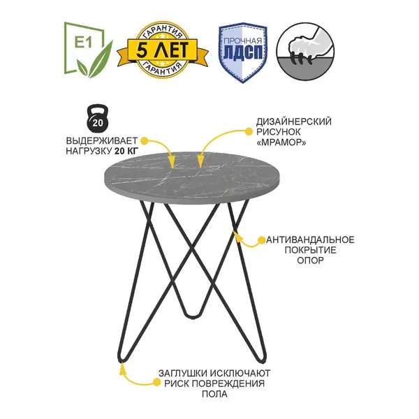 • Оптимальный размер столика позволяет использовать его как подставку под различные предметы интерьера, а также в качестве кофейного столика.