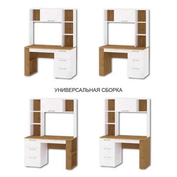 • В комплекте с надстройкой создаёт цельный, продуманный вид рабочей зоны, расширяя функционал стола.