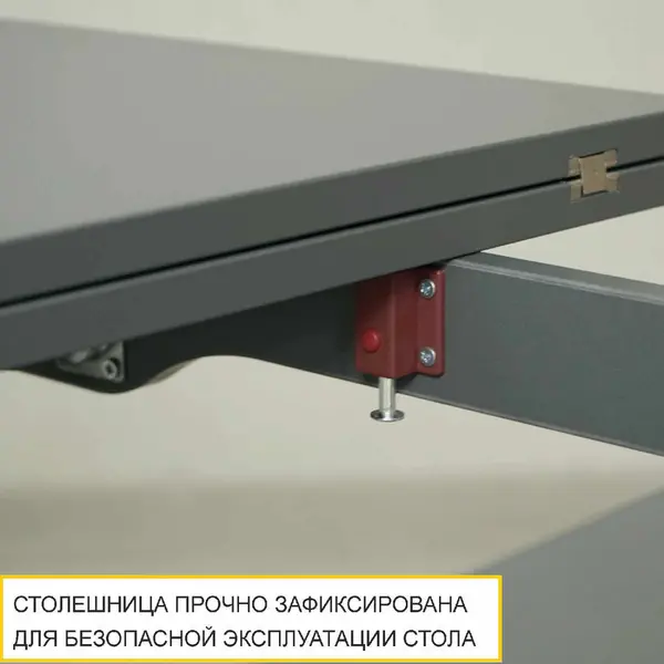 • Замок для фиксации столешницы придает жесткость конструкции, как в собранном, так и в разложенном виде. Позволяет прочно зафиксировать столешницу.