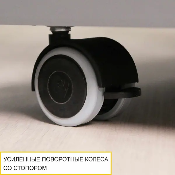 • Усиленные поворотные колеса со стопором позволяют зафиксировать стол в нужном положении для удобства его трансформации.