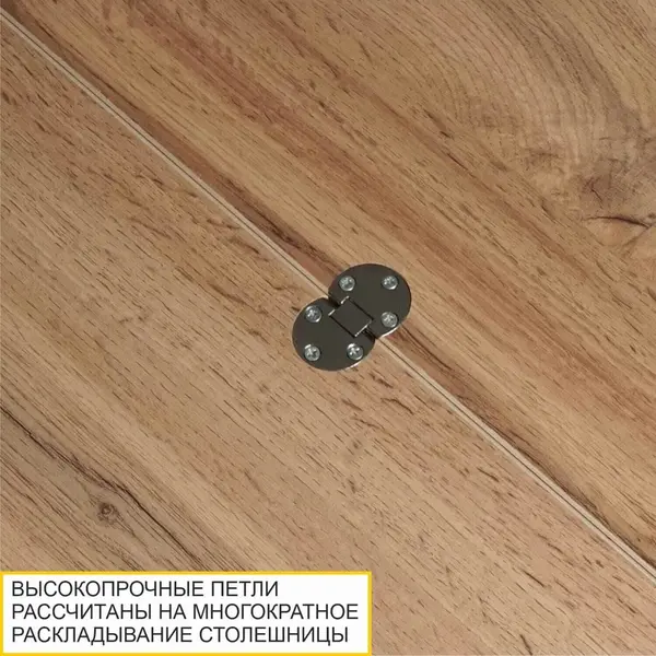 • Высокопрочные петли рассчитаны на многократное раскладывание столешницы и обеспечивают ее надежное крепление, что гарантирует долгий срок эксплуатации.