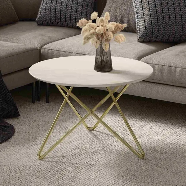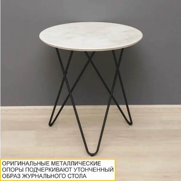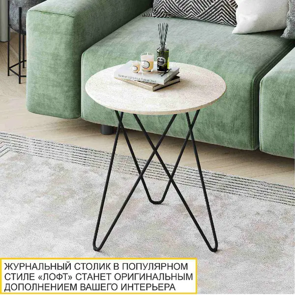 Журнальный столик с круглой столешницей в популярном стиле «Лофт» - отличное решение для тех, кто ищет стильные предметы интерьера. Светло-кремовый оттенок, в котором выполнен журнальный стол, наиболее универсален. Он отлично смотрится в интерьере любой цветовой гаммы, придает уют и ощущение спокойствия.