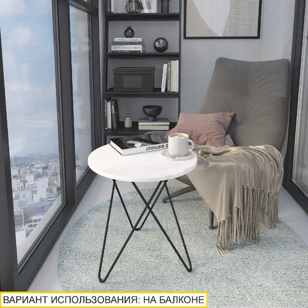 • Оптимальный размер столика позволяет использовать его и как подставку под различные предметы интерьера, и в качестве кофейного столика.