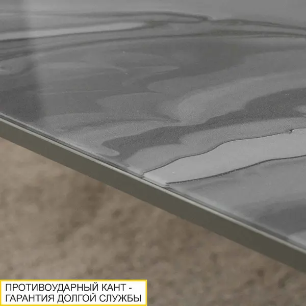 • Противоударный кант ПВХ 2 мм защищает края изделия от сколов и влаги, увеличивает срок эксплуатации изделия и сохраняет его внешний вид на долгие годы.