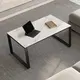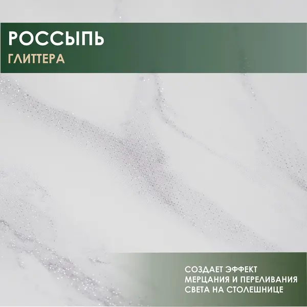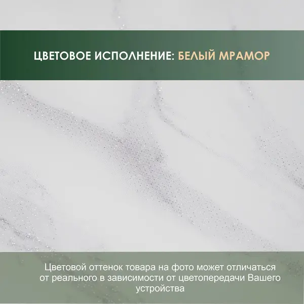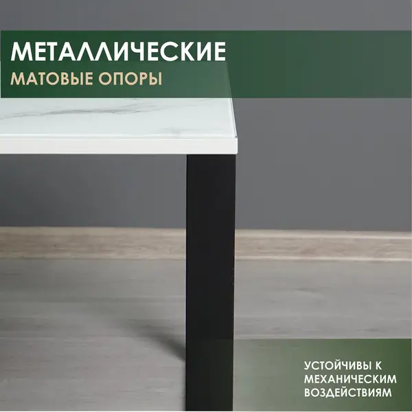 Столешница выполнена в элегантном и стильном цвете «Белый мрамор». Этот оттенок сочетает в себе классические белые тона и изысканность мрамора, а в сочетании с черными опорами создается неповторимый образ стола.
