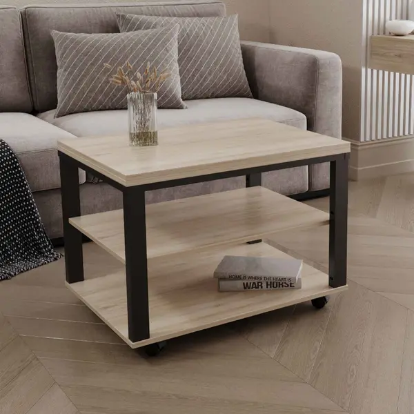 Журнальный столик выполнен в серо-бежевых оттенках натурального дерева. Такие оттенки наиболее универсальны, они отлично смотрятся в интерьерах любой цветовой гаммы. Имитация натуральной древесной текстуры создает ощущение уюта. Природная красота экостиля добавляет модную нотку Вашему интерьеру.
