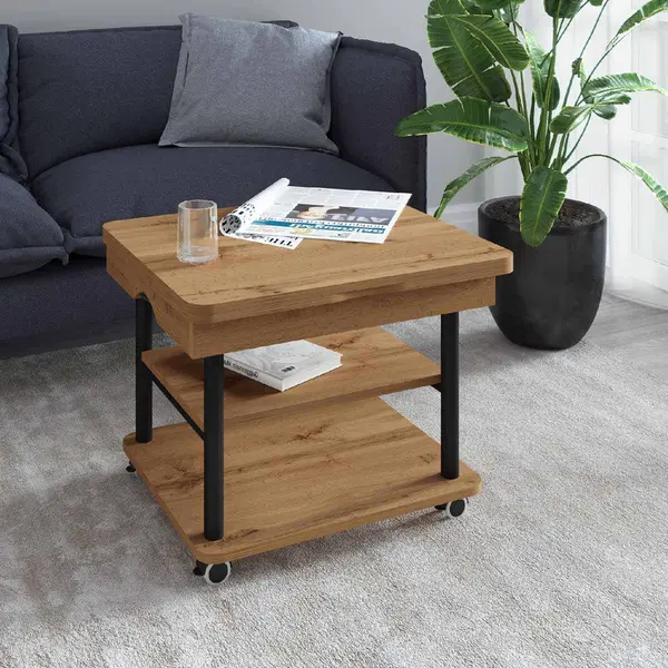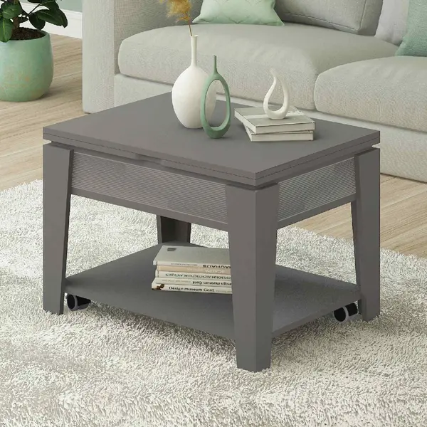 • Подъемный механизм легко и просто позволяет преобразовать журнальный стол в обеденный, увеличивая высоту до 73 см. Благодаря подъемному механизму стол может использоваться как кофейный столик, а также как полноценный стол для кухни или для гостиной.