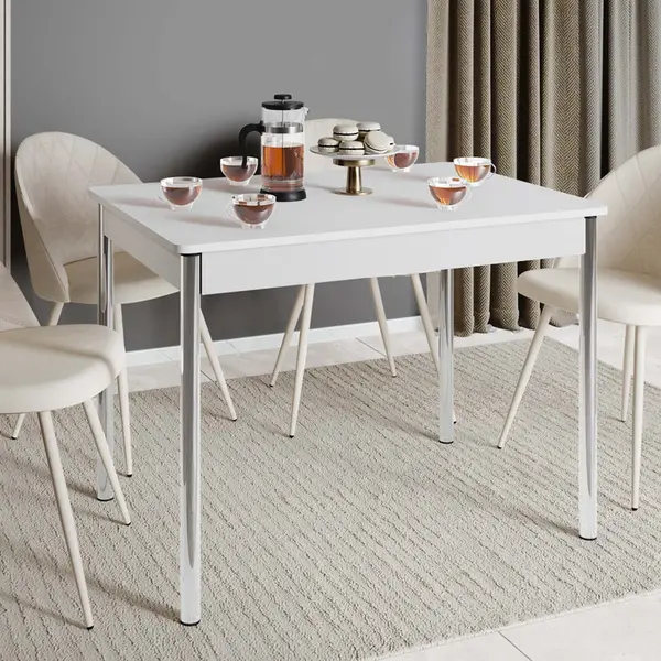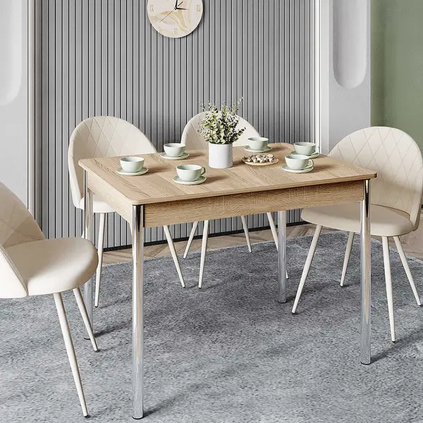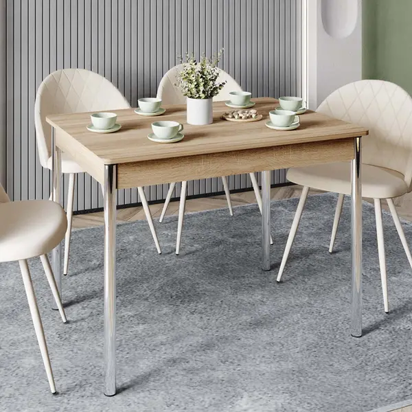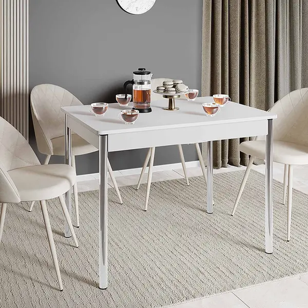 • Хромированные металлические опоры подчеркивают общую концепцию стола кухонного прямоугольного, формируют легкий и утонченный образ.