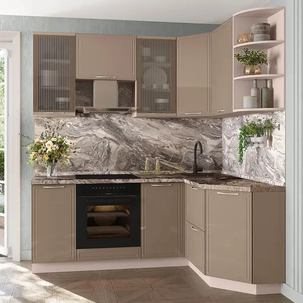 • С помощью угловых модулей легко спроектировать функциональную П-образную кухню.