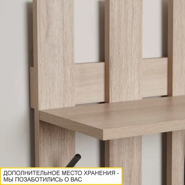 • Вешалка в прихожую оснащена полкой, что обеспечивает дополнительное место для хранения головных уборов и аксессуаров.