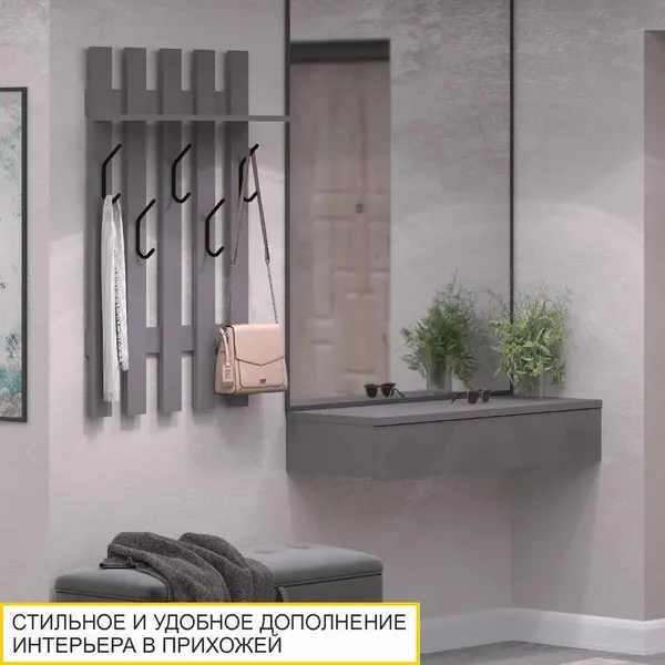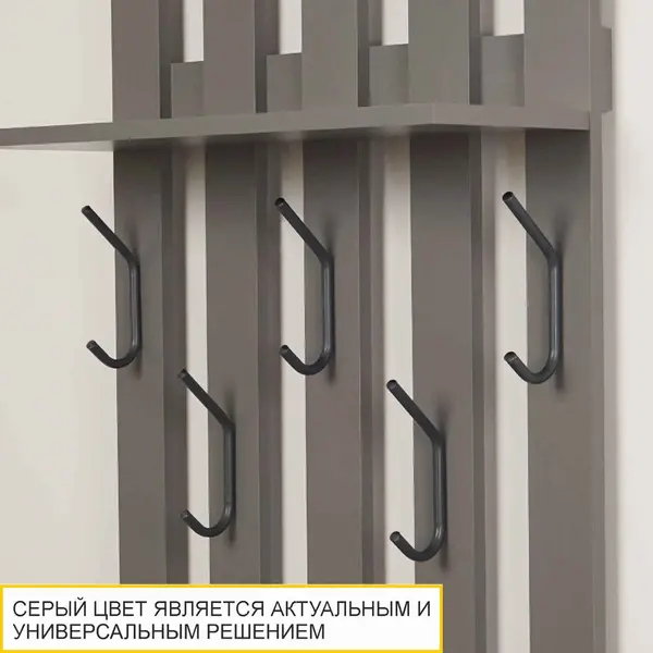 Серый цвет, в котором выполнена вешалка, является базовым цветом. Он прекрасно сочетается с различными оттенками и успешно применяется в разнообразных стилевых решениях.