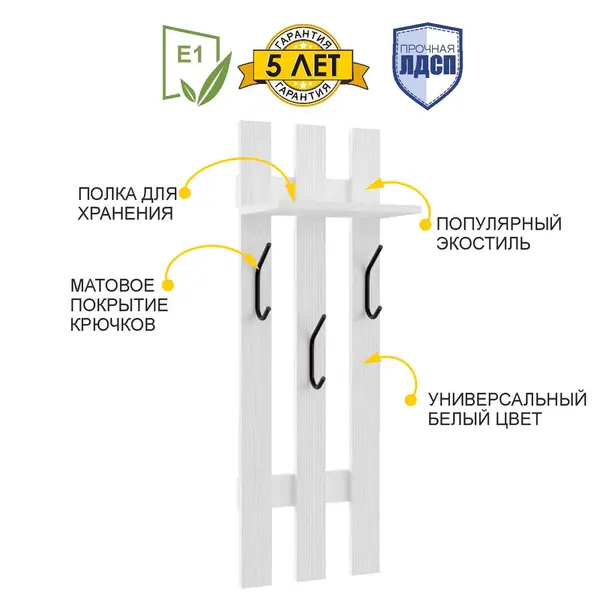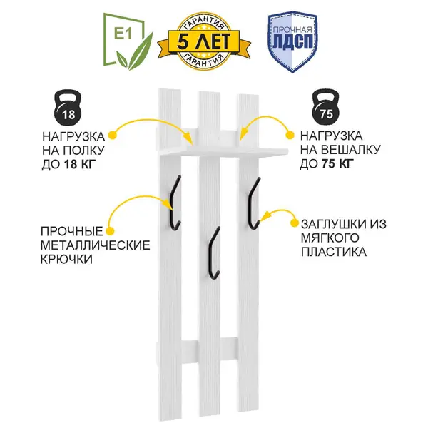 • Прочные металлические крючки стильной формы придают изделию эффектный внешний вид. Суммарная нагрузка на крючки не более 50 кг.