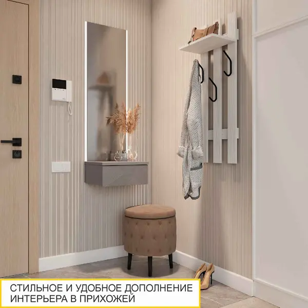 • Вешалка в прихожую оснащена полкой, что обеспечивает дополнительное место для хранения головных уборов и аксессуаров.