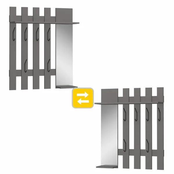 • Для Вашего комфортного использования мы предусмотрели возможность универсальной сборки. Зеркало с полкой можно разместить как с левой, так и с правой стороны от панели с крючками.