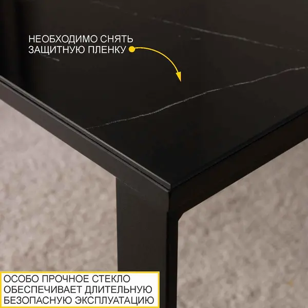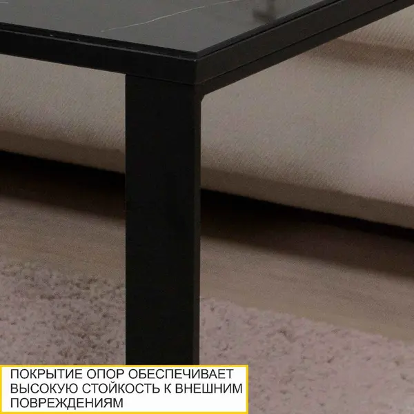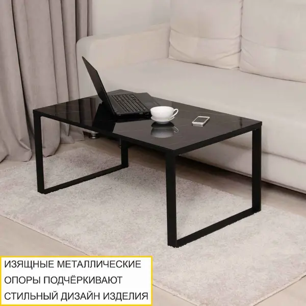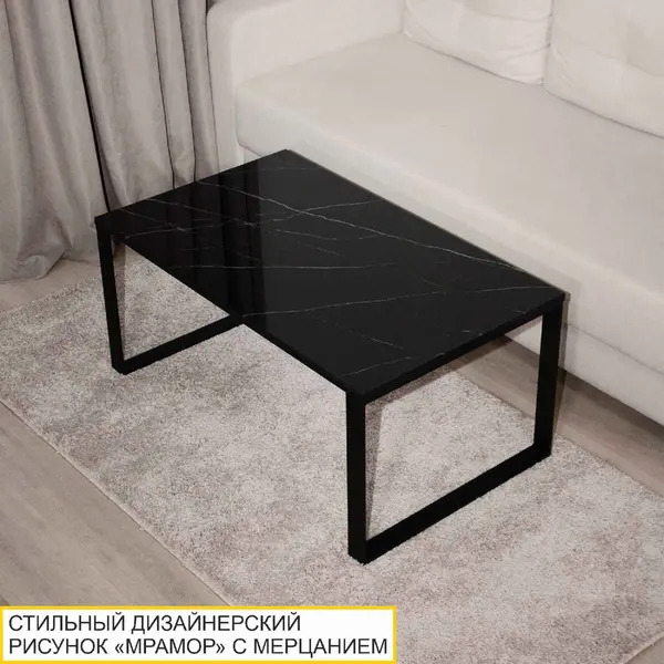 Журнальный стол выполнен в элегантном черном цвете. Такой цвет – это олицетворение респектабельности и безупречного вкуса. Его можно сочетать с любыми другими цветами и фактурами. В то же время он может выступать в качестве акцента и с успехом применяться в разнообразных стилевых решениях. Стеклянная столешница с дизайнерским рисунком «мрамор» подчеркивает стильный внешний вид изделия и добавляет ему оригинальности. Благодаря стеклу рисунок не стирается и не выцветает со временем.