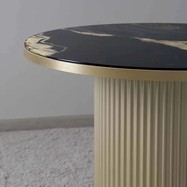 Журнальный столик выполнен в мраморном черном цвете с «золотой» опорой. Такая комбинация олицетворяет респектабельность, элегантность и безупречный вкус. Стол сочетается с любыми другими цветами и фактурами. В то же время может выступать акцентом в интерьере и с успехом применяться в разнообразных стилевых решениях. Линейка товаров «Venerdi» создана с учетом многолетнего опыта разработки и производства мебели. Эта мебель произведена на одной из крупнейших фабрик России. Вы всегда можете связаться с нами по вопросам качества товара.