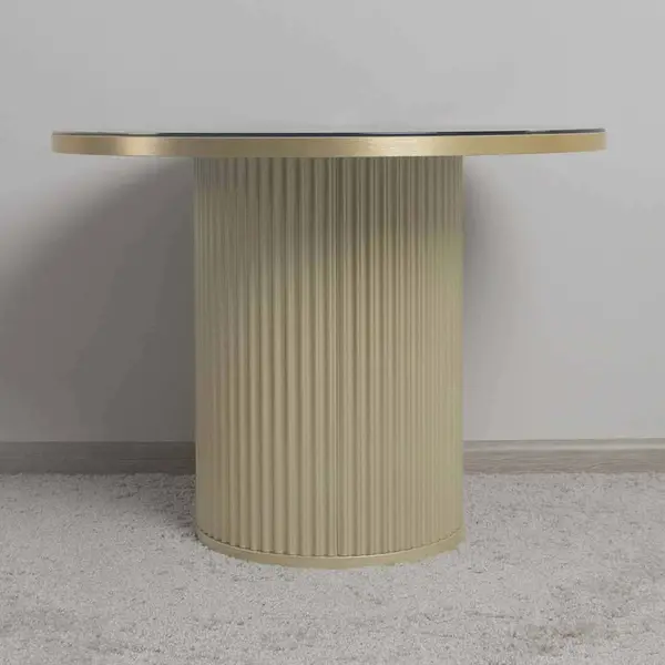 • Противоударный кант ПВХ в золотом цвете придает не только эстетичный вид, но и защищает материал от влаги и внешних воздействий. Повышает долговечность, износостойкость и придает журнальному столику эстетичный вид.