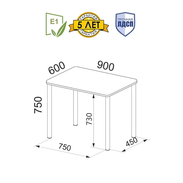 • Столешница выполнена из ЛДСП 22 мм повышенной прочности класса эмиссии Е1.
