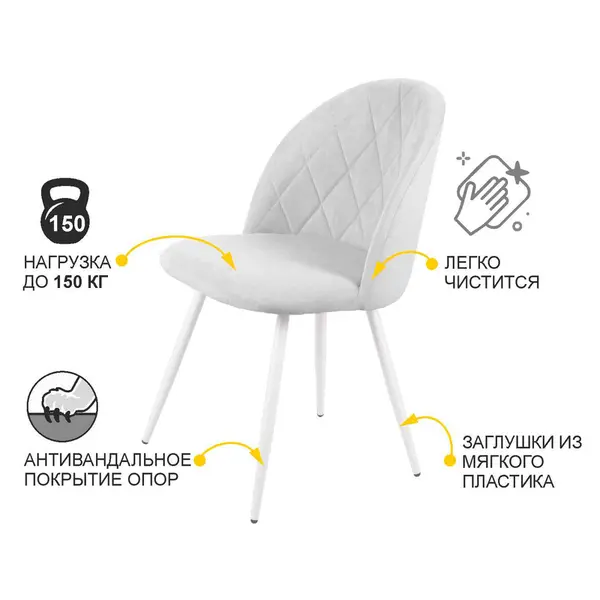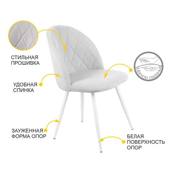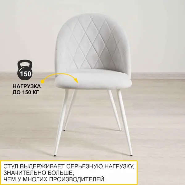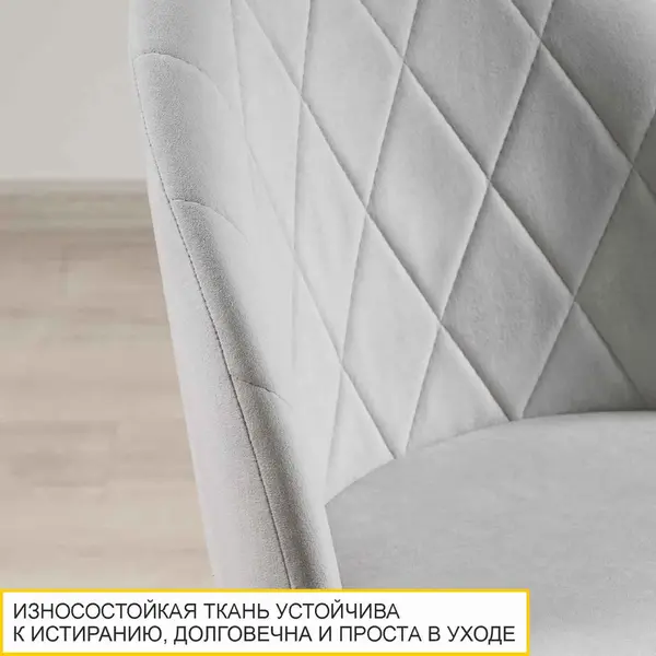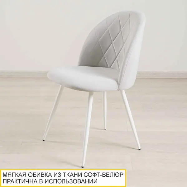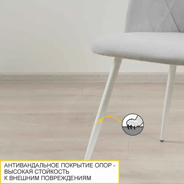 Стул выполнен в базовом светло-сером цвете, он прекрасно сочетается с различными оттенками и успешно применяется в разнообразных решениях в интерьере.