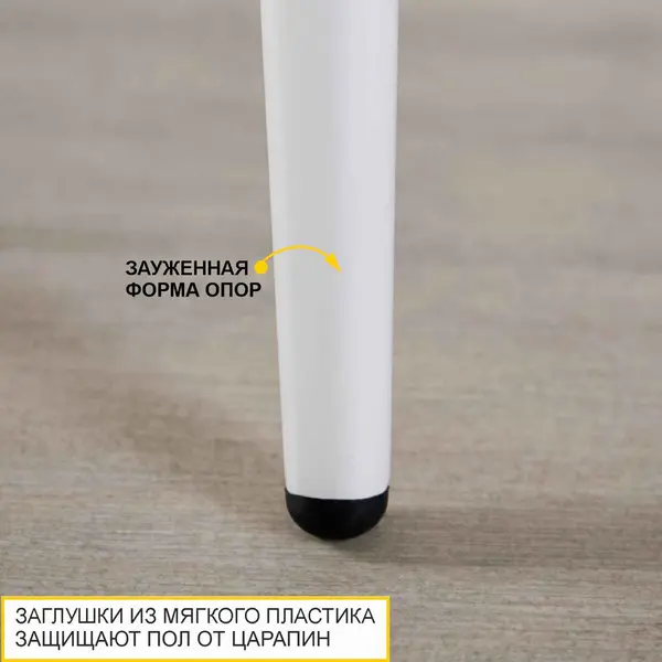• Заглушки из мягкого пластика исключают риск повреждения напольного покрытия и защищают пол от царапин. Качественный пластик обеспечивает плотную посадку заглушек в опору и исключает их поломку.