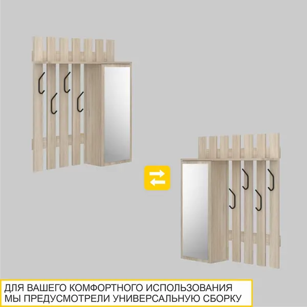 • Для Вашего комфортного использования мы предусмотрели возможность универсальной сборки. Шкаф можно разместить как с левой, так и с правой стороны от панели с крючками.