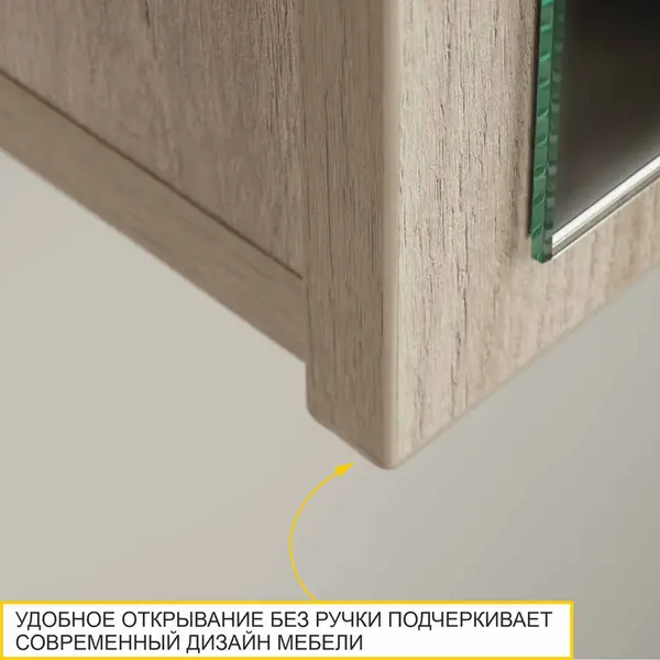 • Шкафчик легко и удобно открывается за счет выступа фасада. Отсутствие ручки подчеркивает современный дизайн мебели. Шкафчик с зеркалом выдерживает нагрузку до 50 кг.