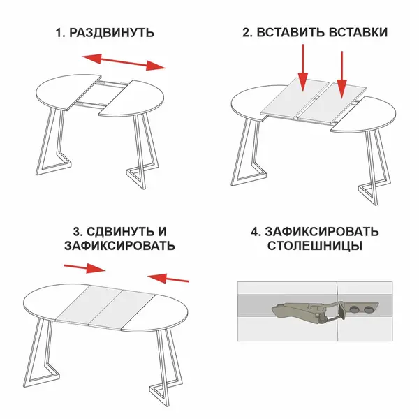 • Благодаря удобному механизму трансформации стол кухонный раздвижной легко и быстро сможет разложить даже хрупкая девушка.