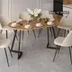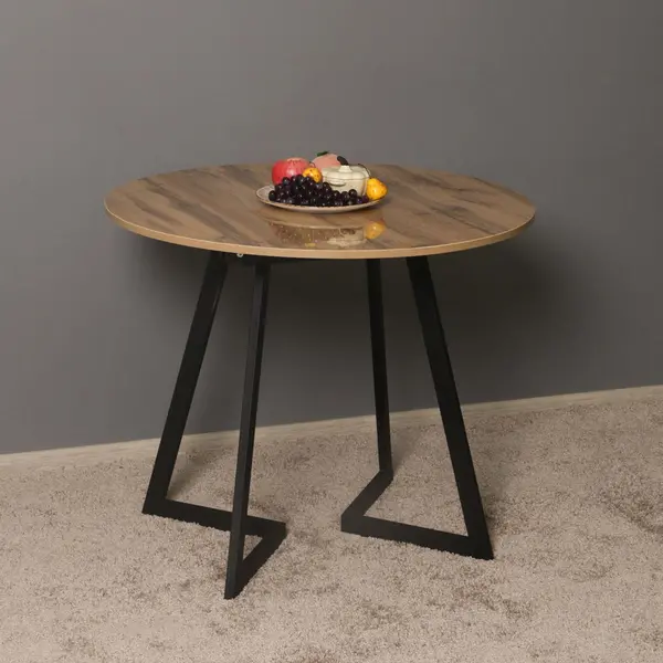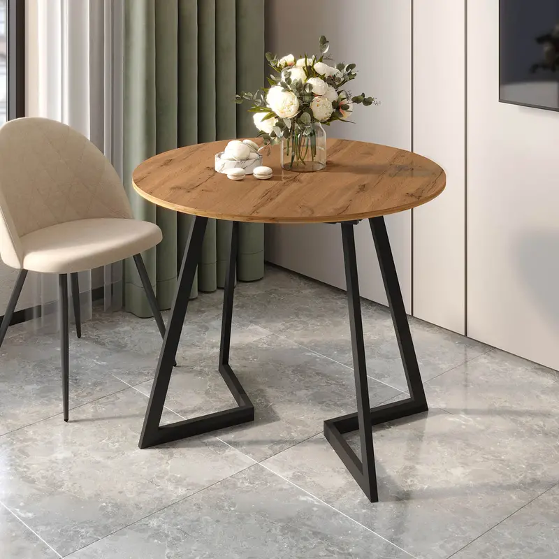 • Круглая форма столешницы с древесной текстурой – оригинальное решение, которое пользуется большой популярностью, визуально расширяет пространство и добавляет нотку экостиля в интерьер.